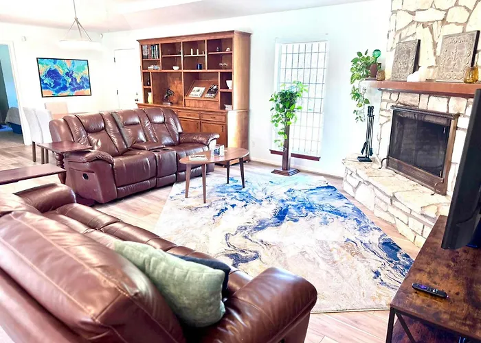 Welcome to the Spacious Retro 2Br 3Ba In Quiet Neighborhood, where comfort meets charm in a serene setting. This inviting retreat is nestled in a peaceful locality, offering not just a place to stay, but a true home away from home, ideal for families or groups looking to unwind in style. The warm aesthetic and vintage-inspired décor exude a sense of nostalgia while catering to the modern traveler's needs.